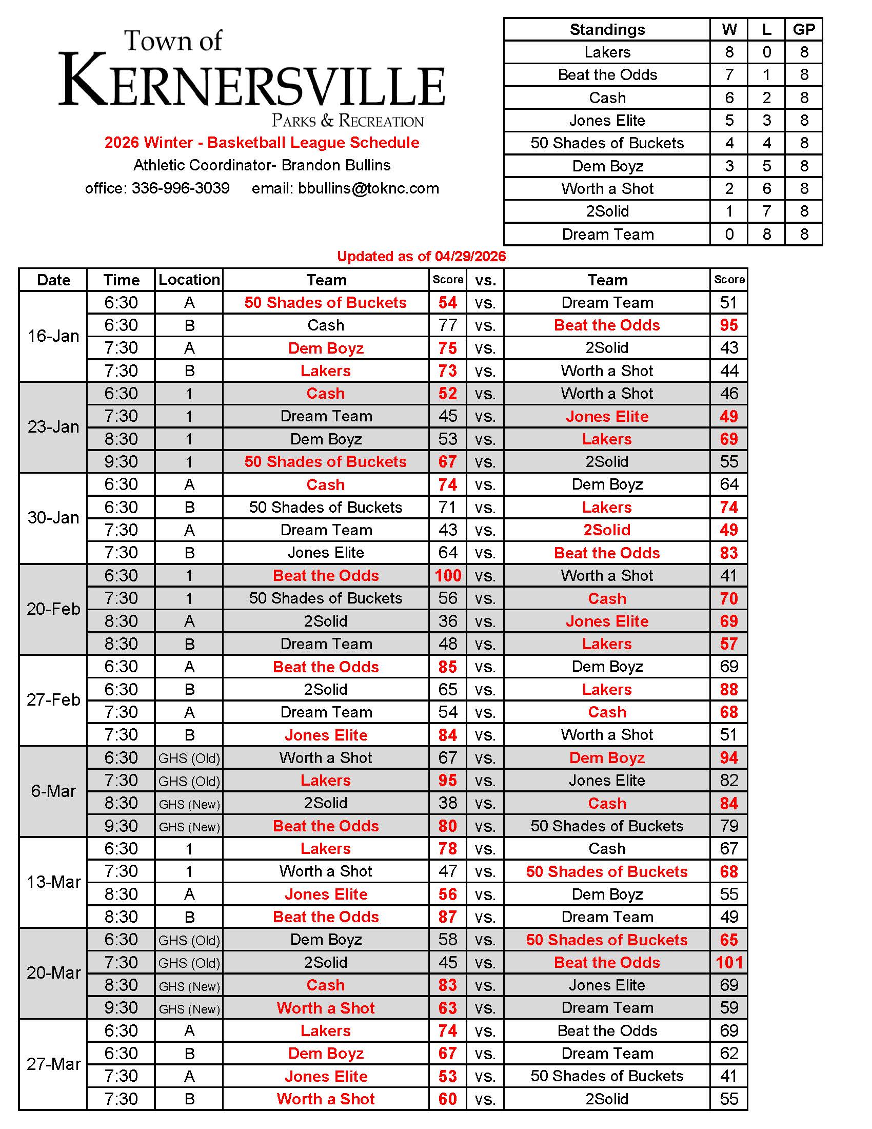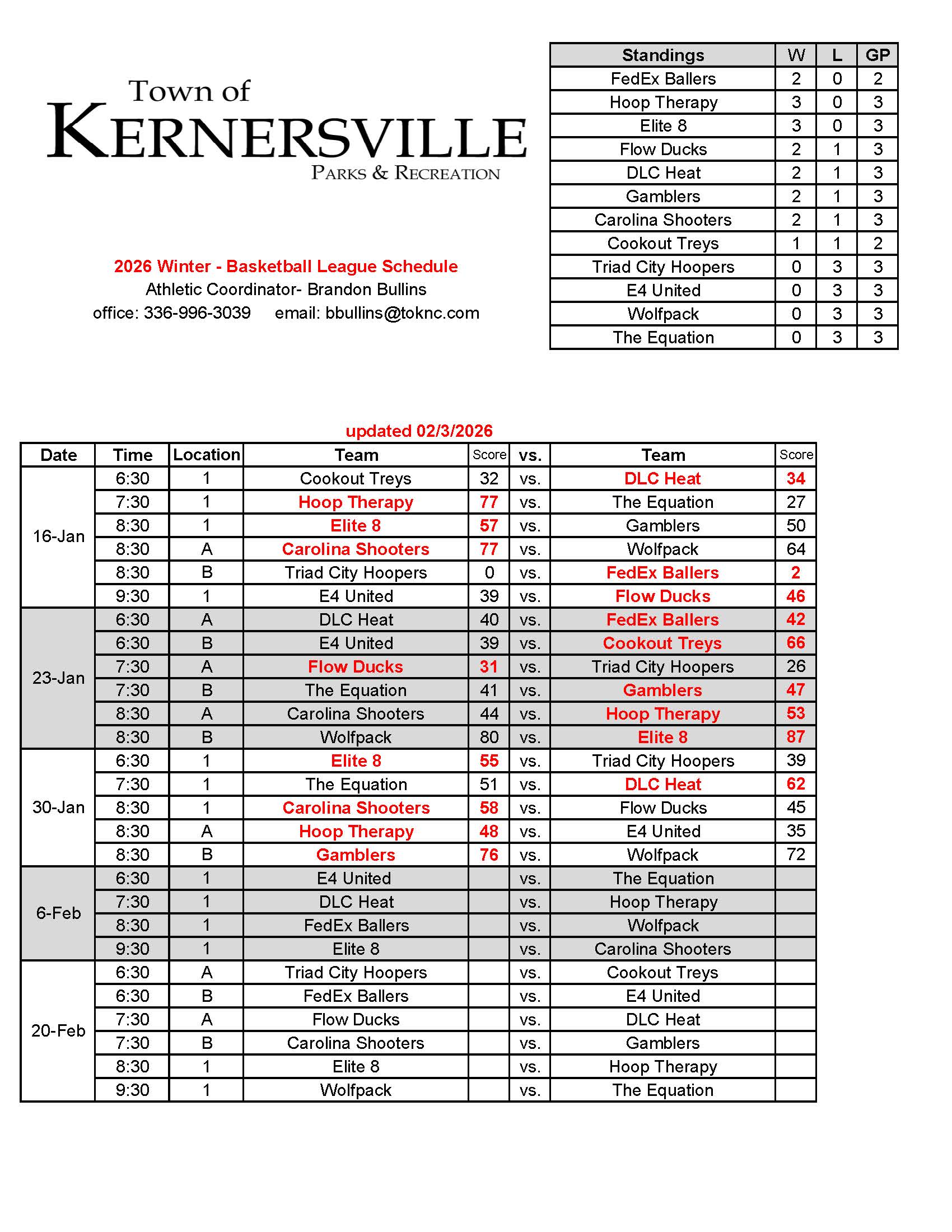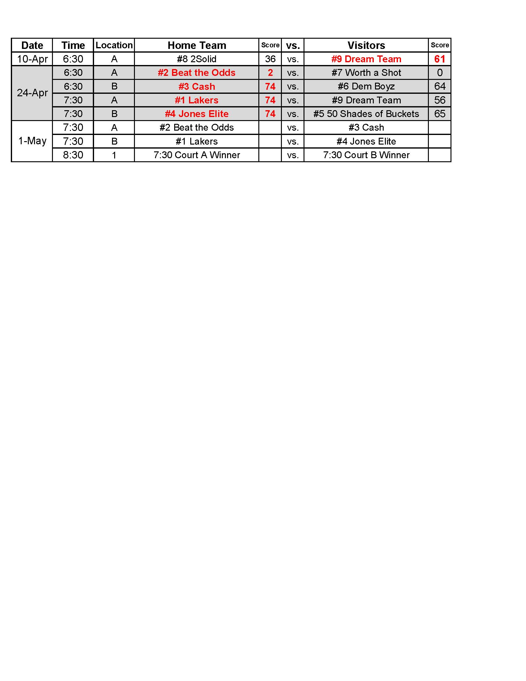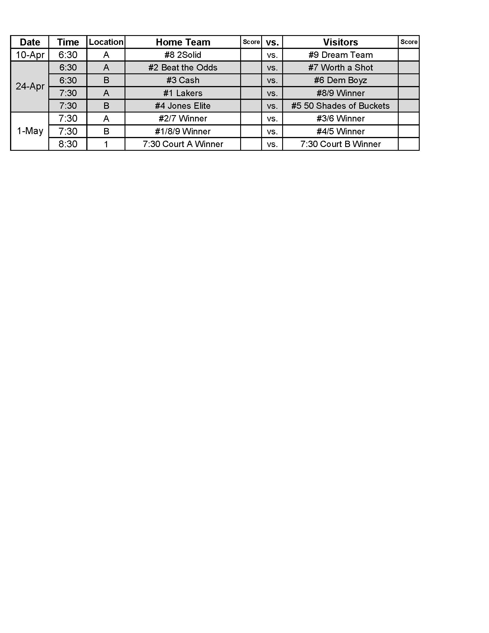 Basketball Schedule – Competitive