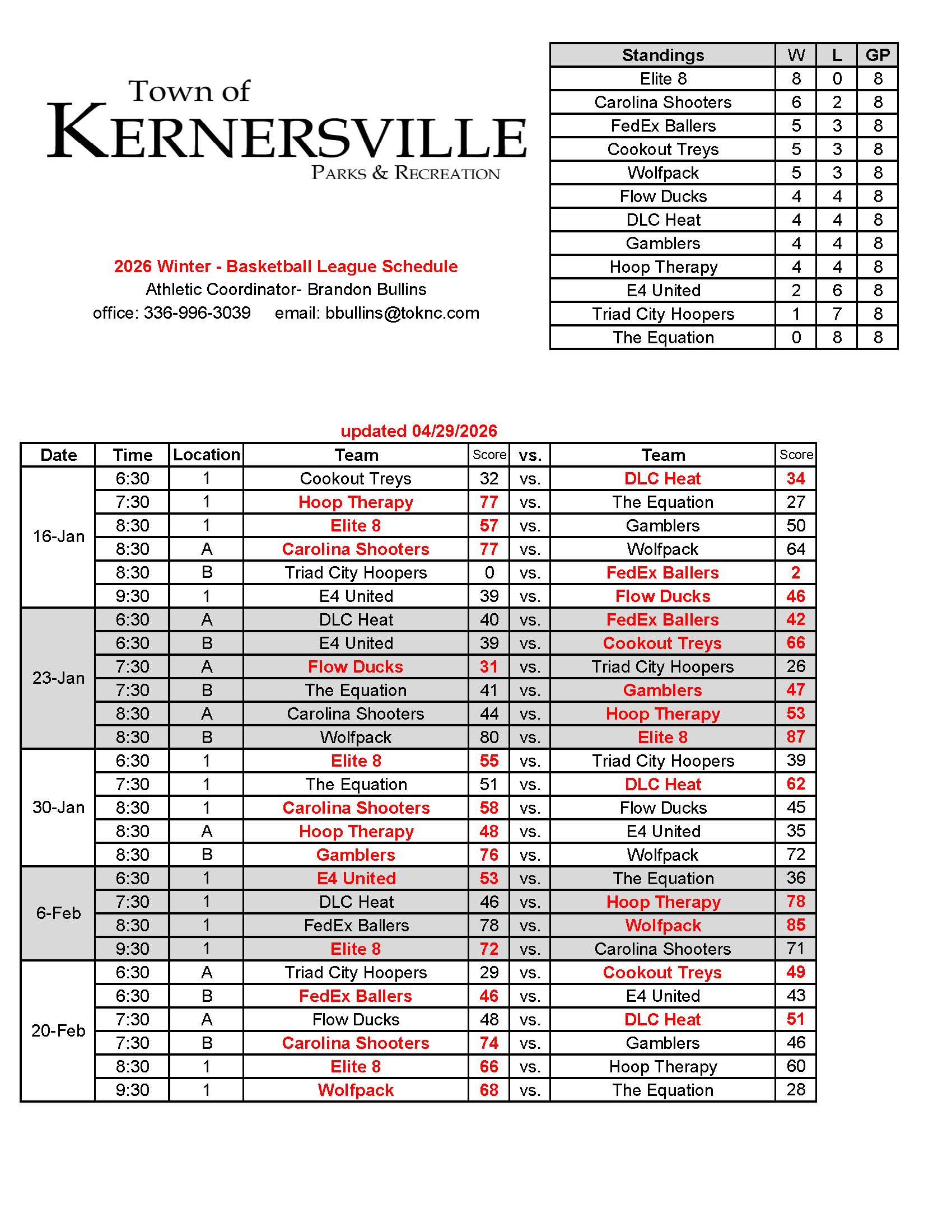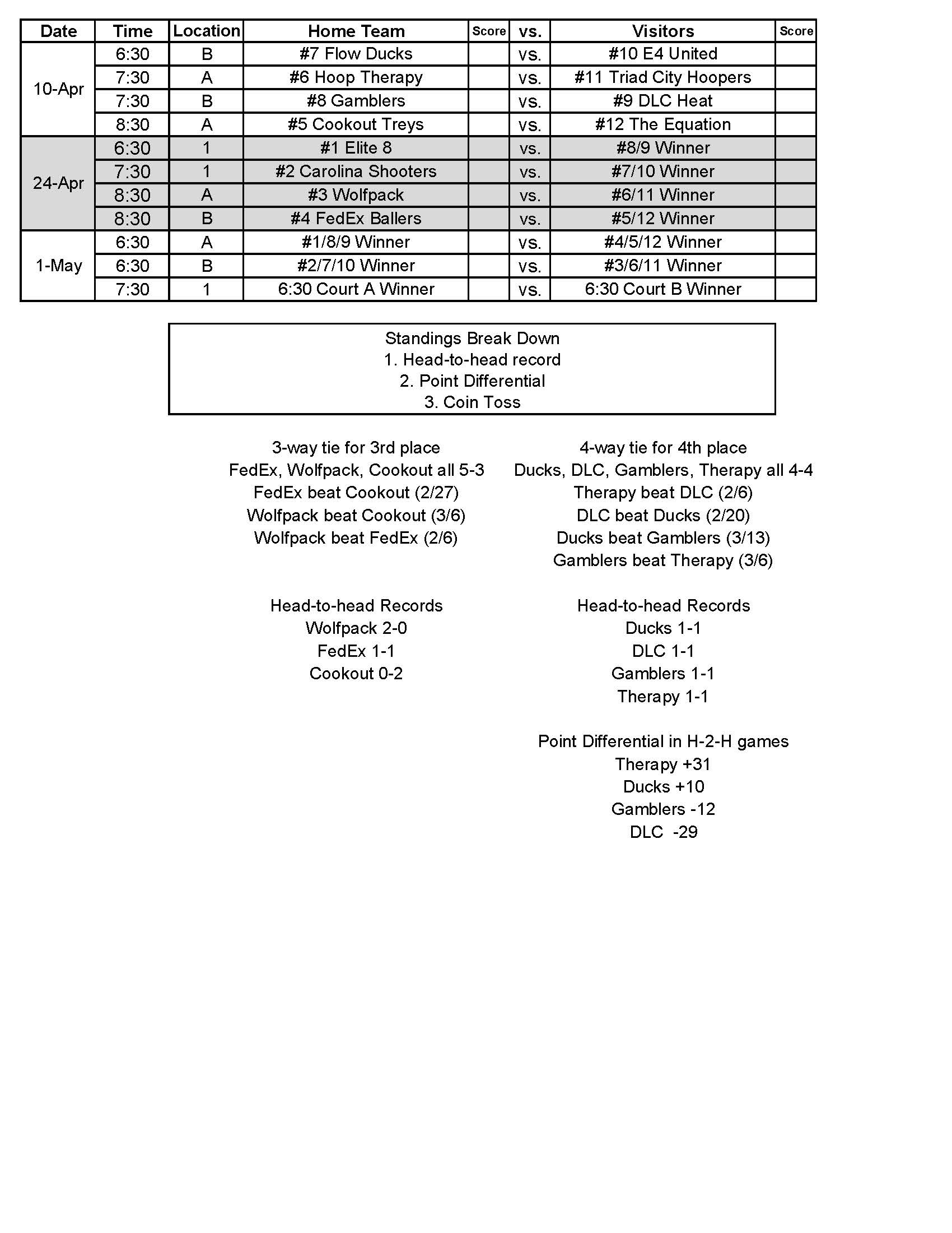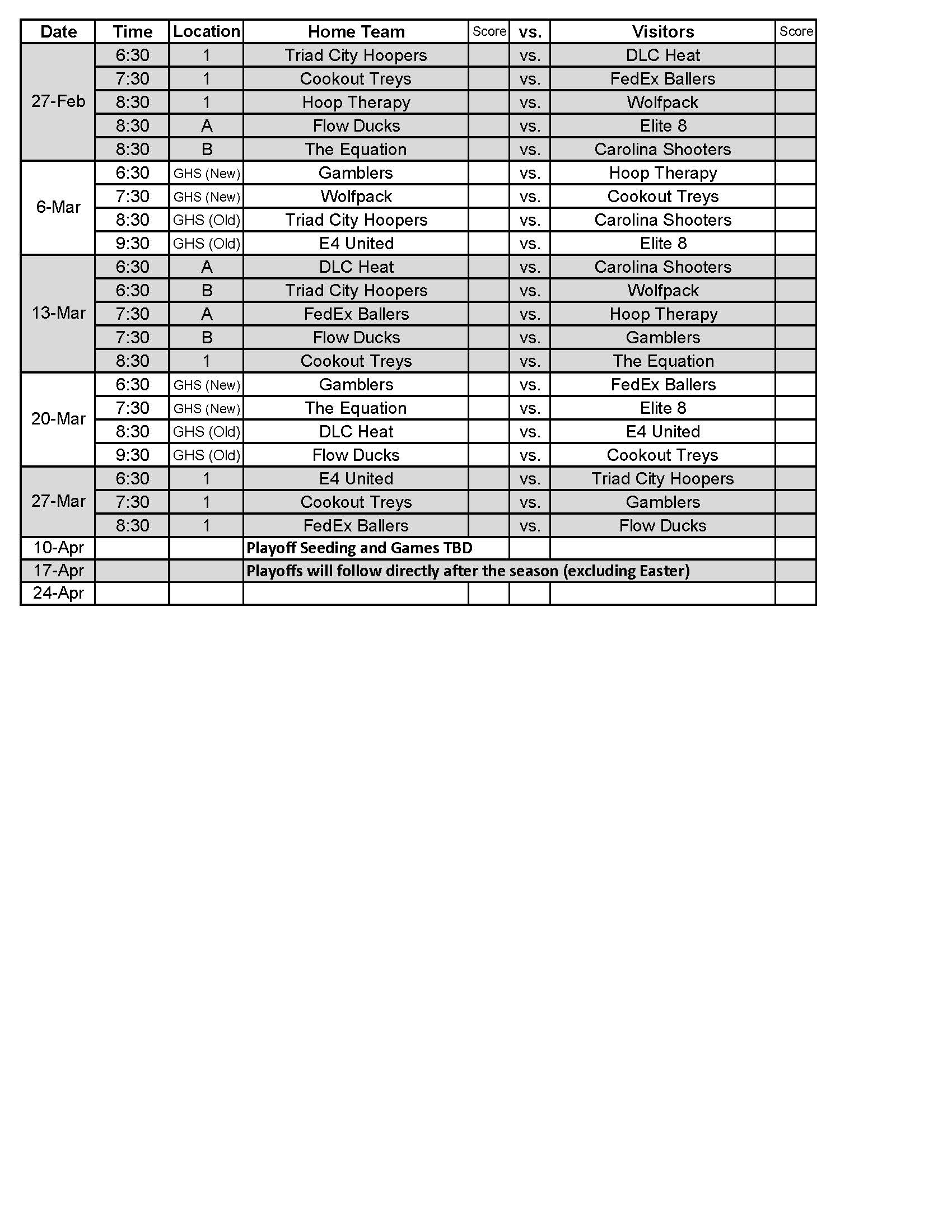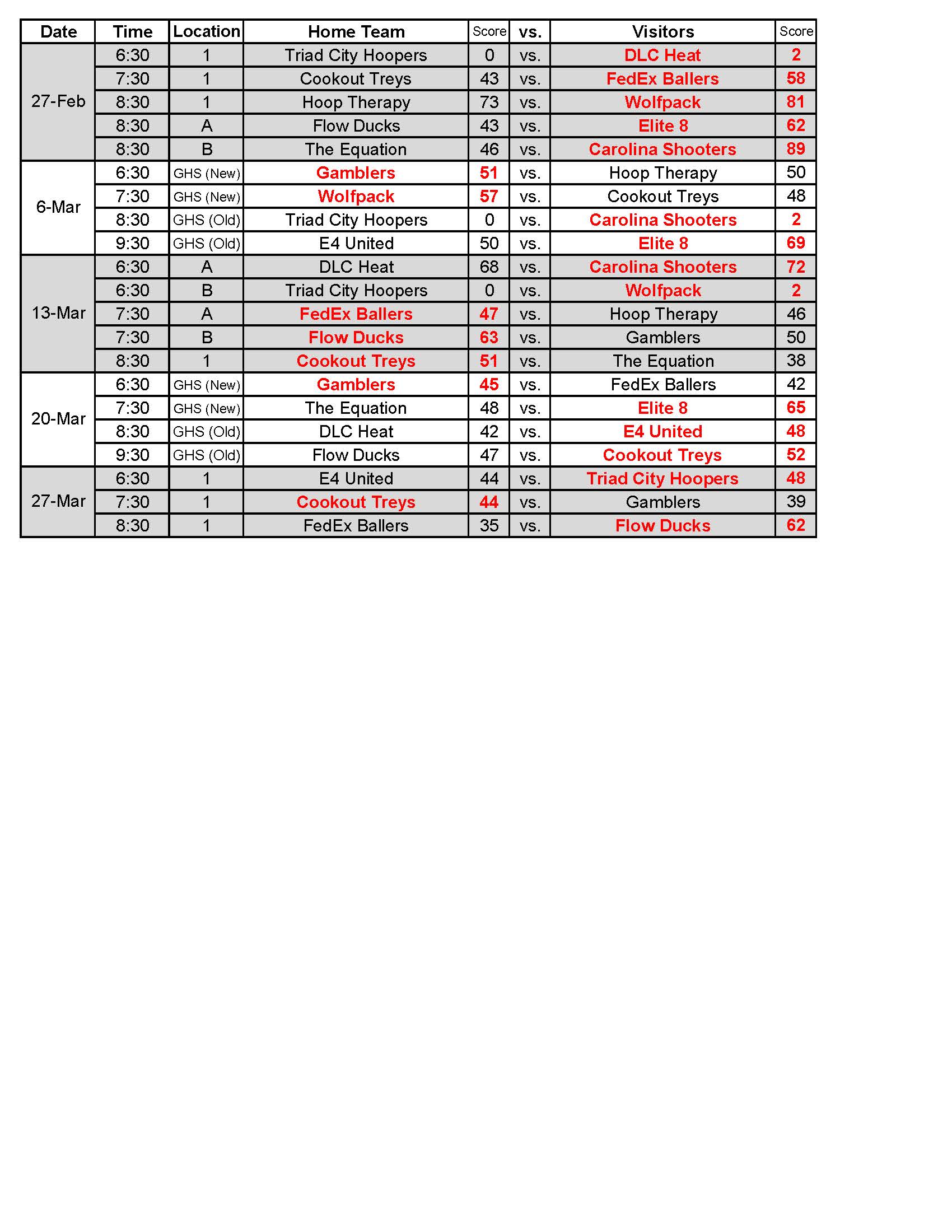 Basketball Schedule – Recreational