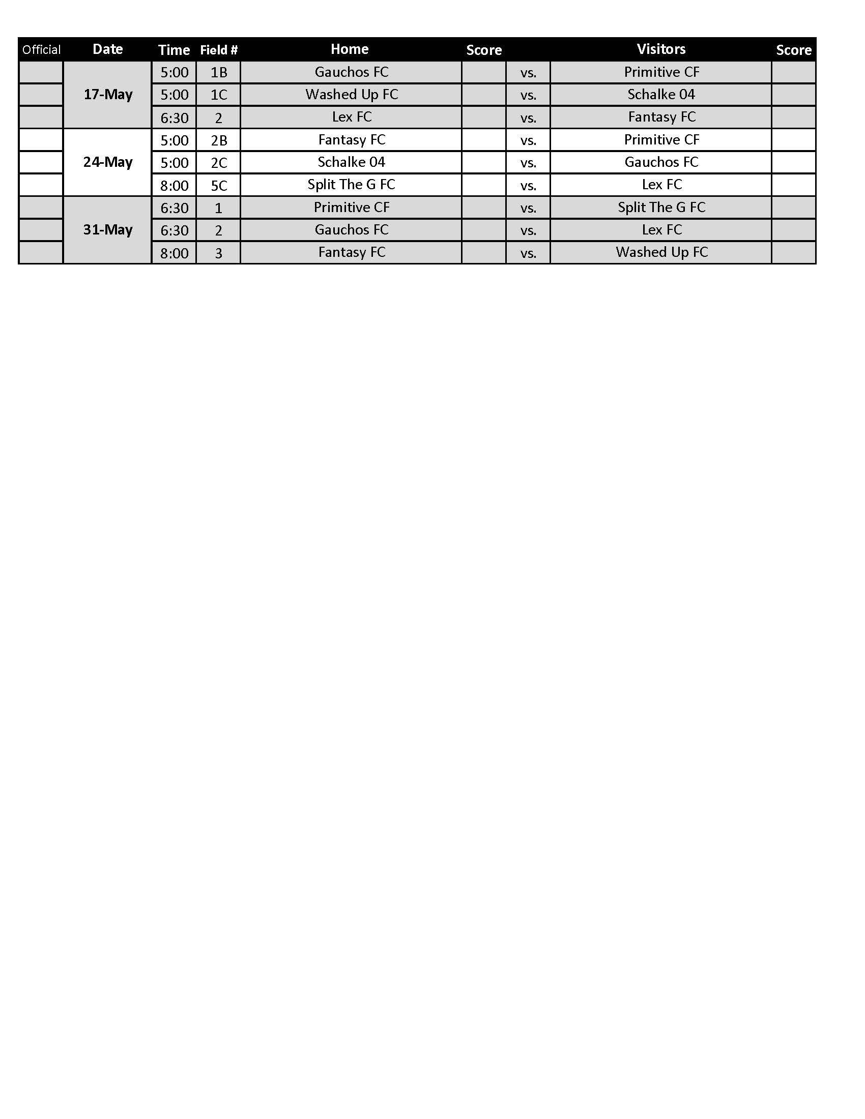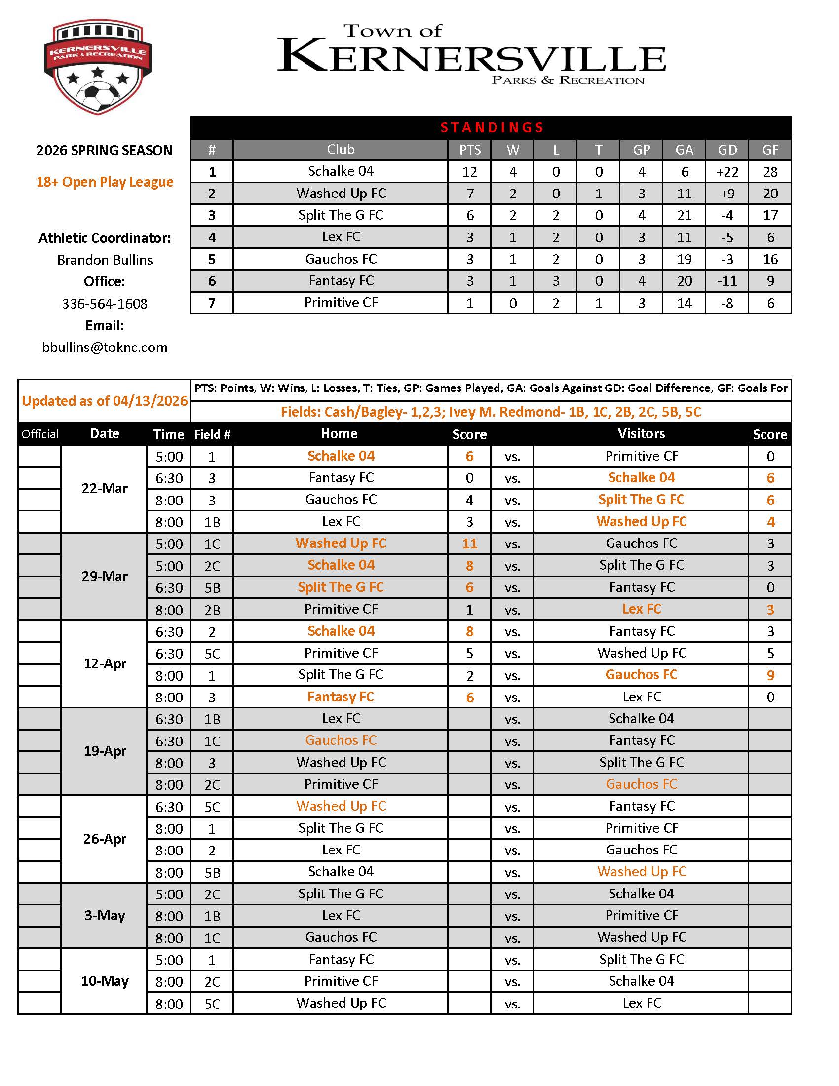 18+ Open Play Schedule