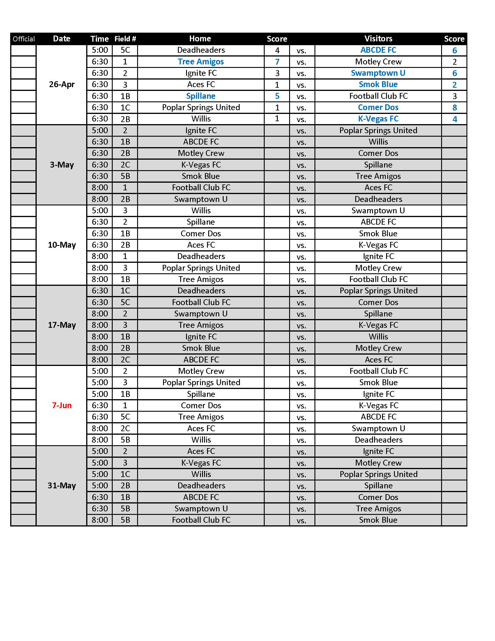 Todos los jugadores deben presentar la identificación (DEBE incluir foto y fecha de nacimiento) para poder jugar el partido.