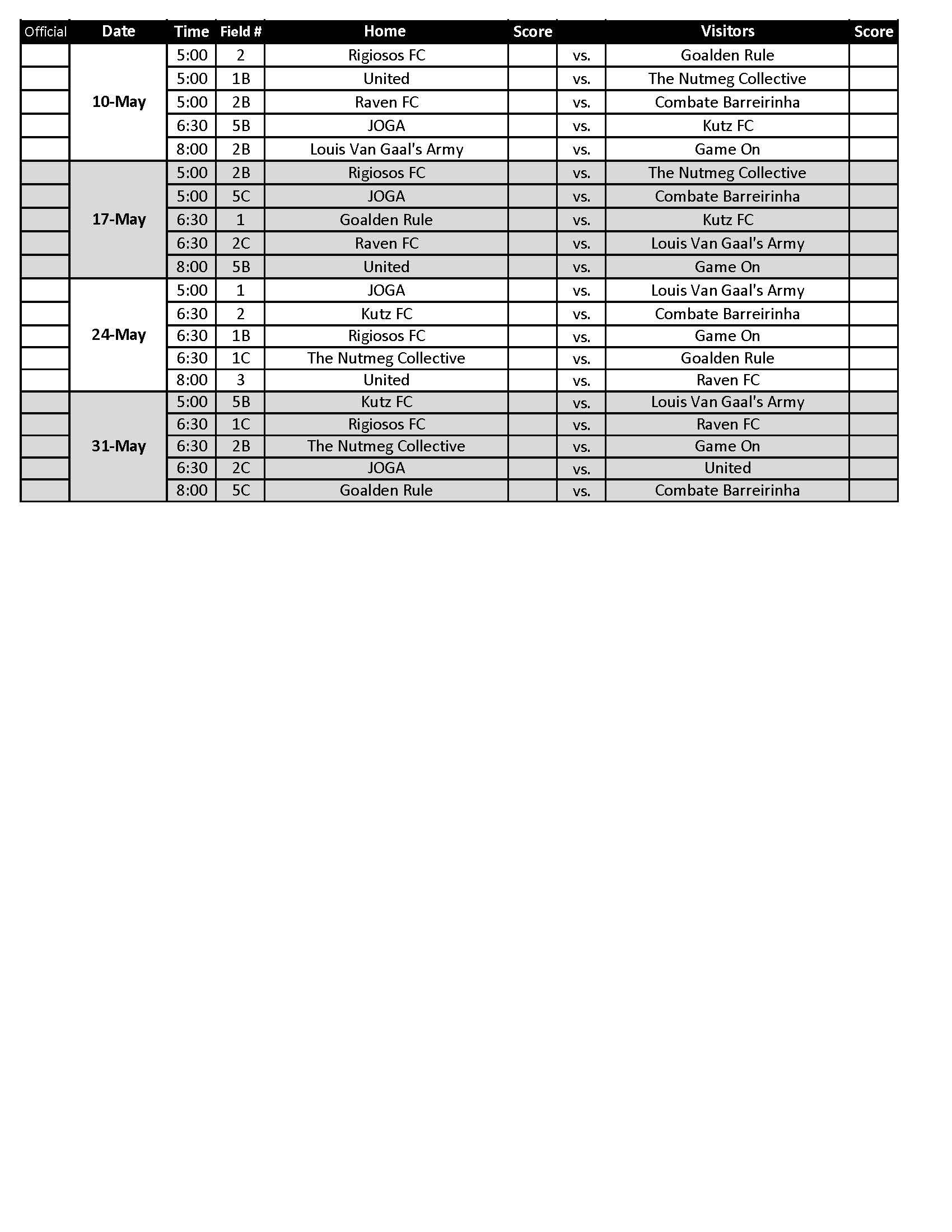 Todos los jugadores deben presentar la identificación (DEBE incluir foto y fecha de nacimiento) para poder jugar el partido.
