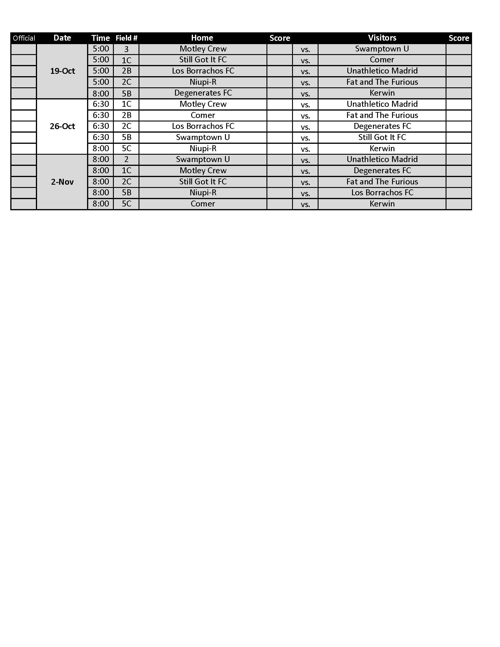 Todos los jugadores deben presentar la identificación (DEBE incluir foto y fecha de nacimiento) para poder jugar el partido.