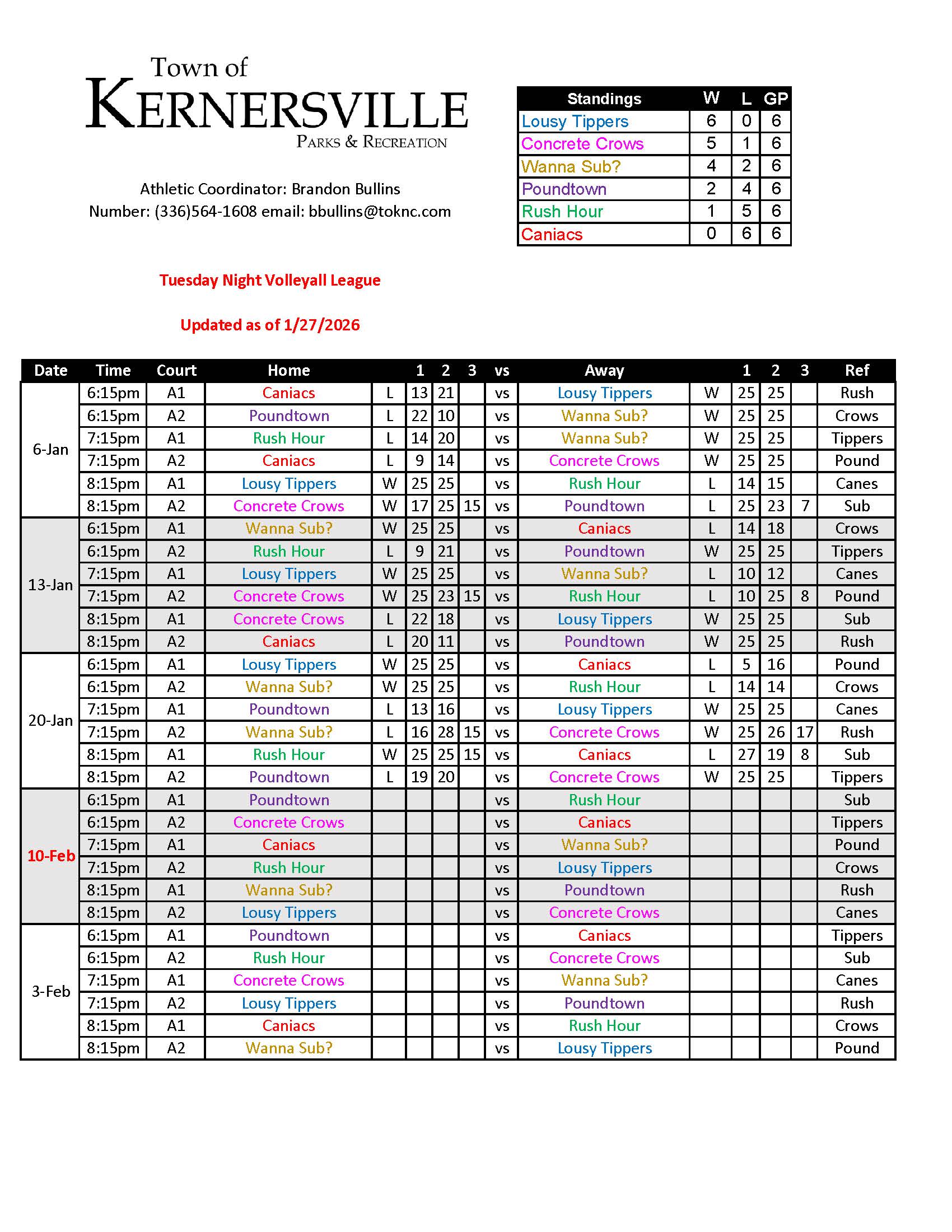 Advanced Schedule (Volleyball)