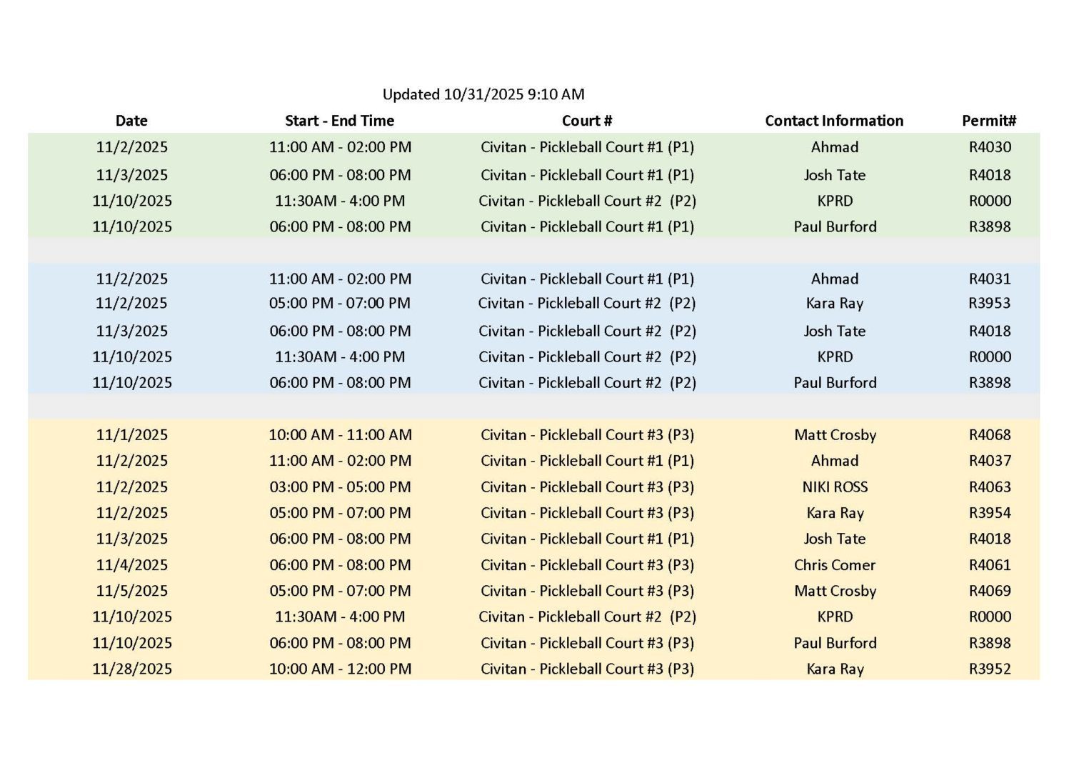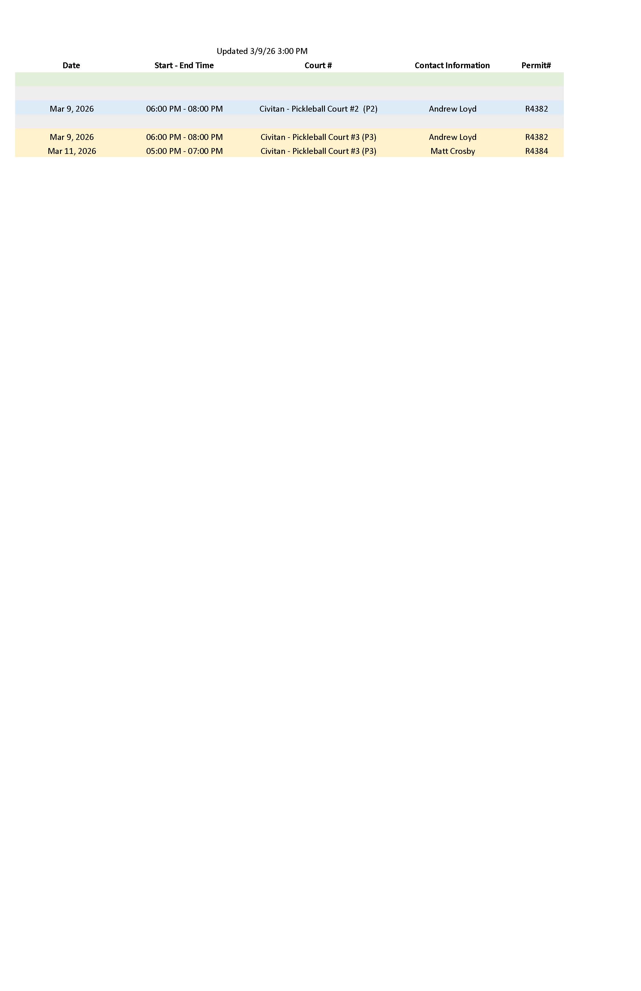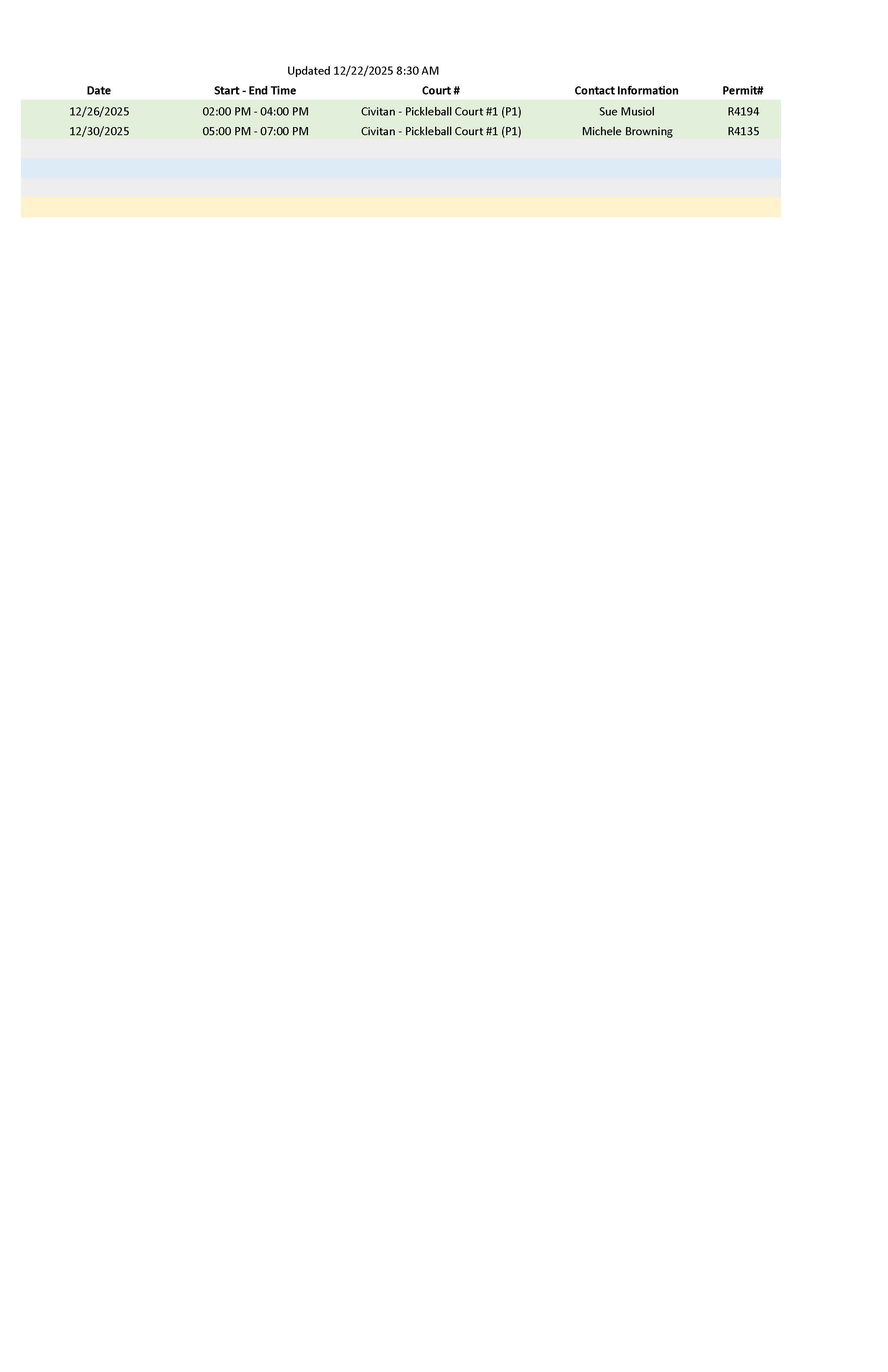 Court reservations made after 9:00AM on Fridays may not make the schedule for the weekend.