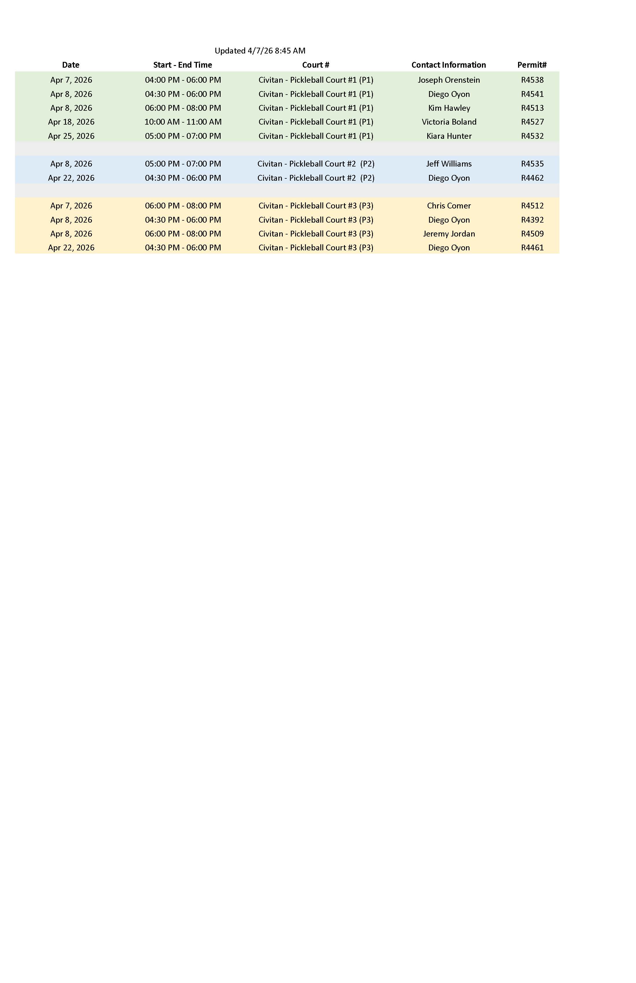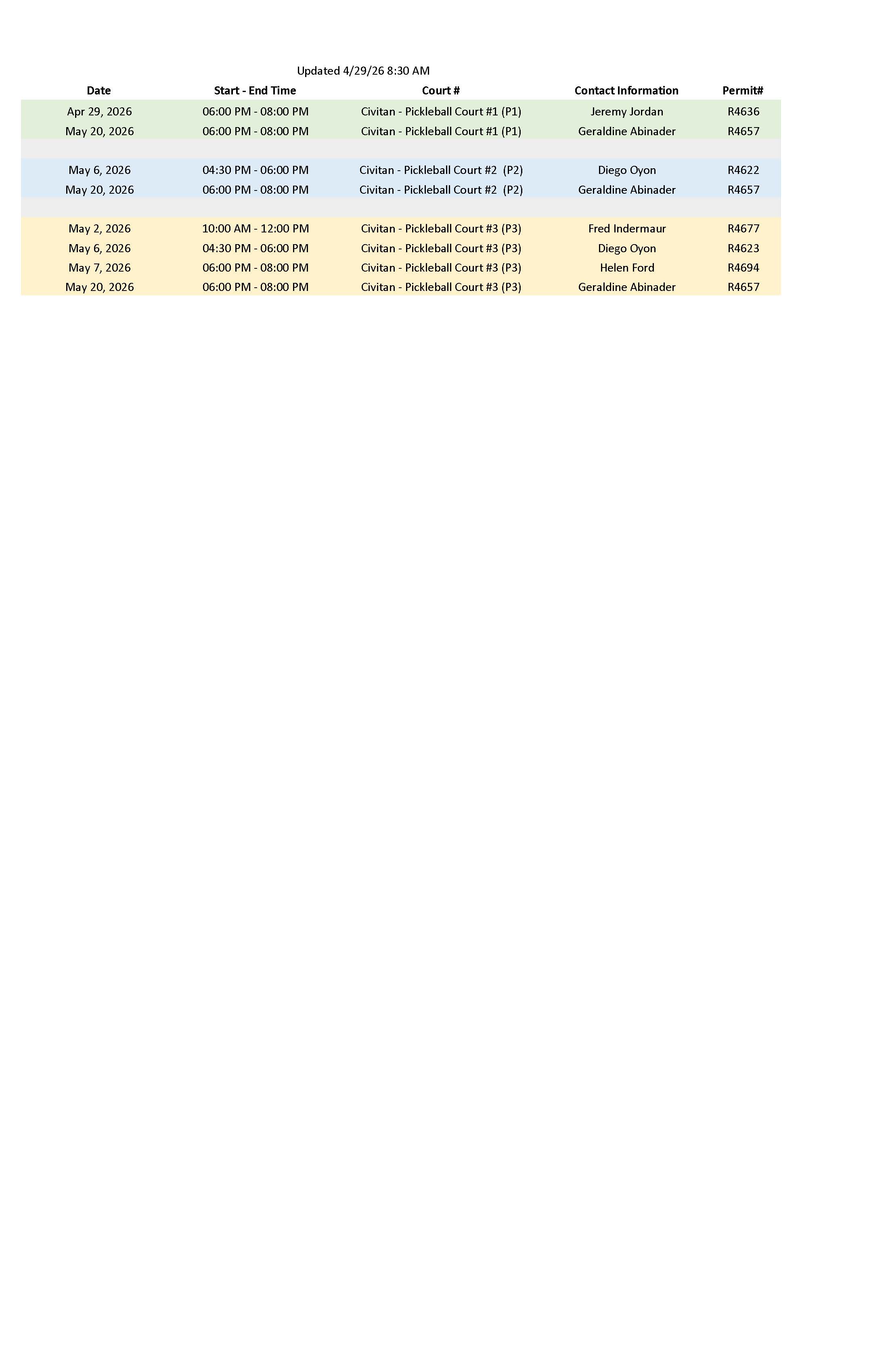 Civitan Pickleball Schedule