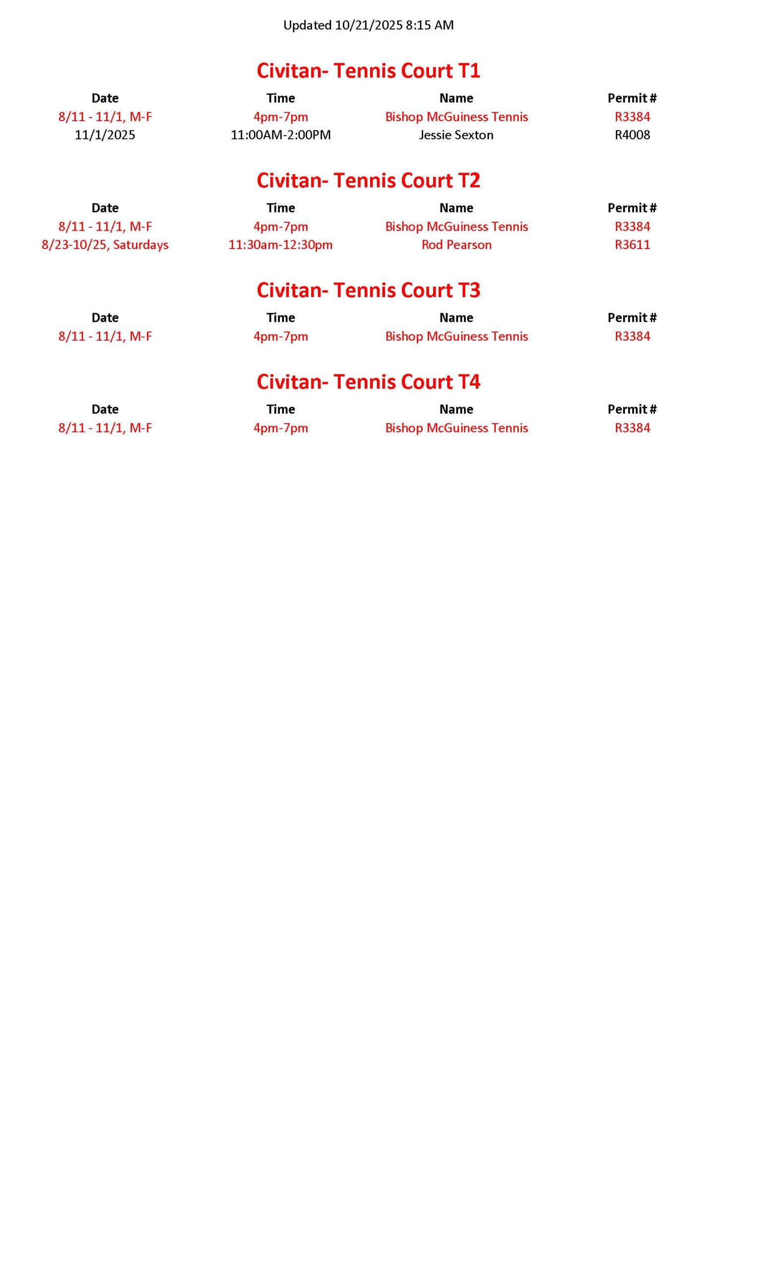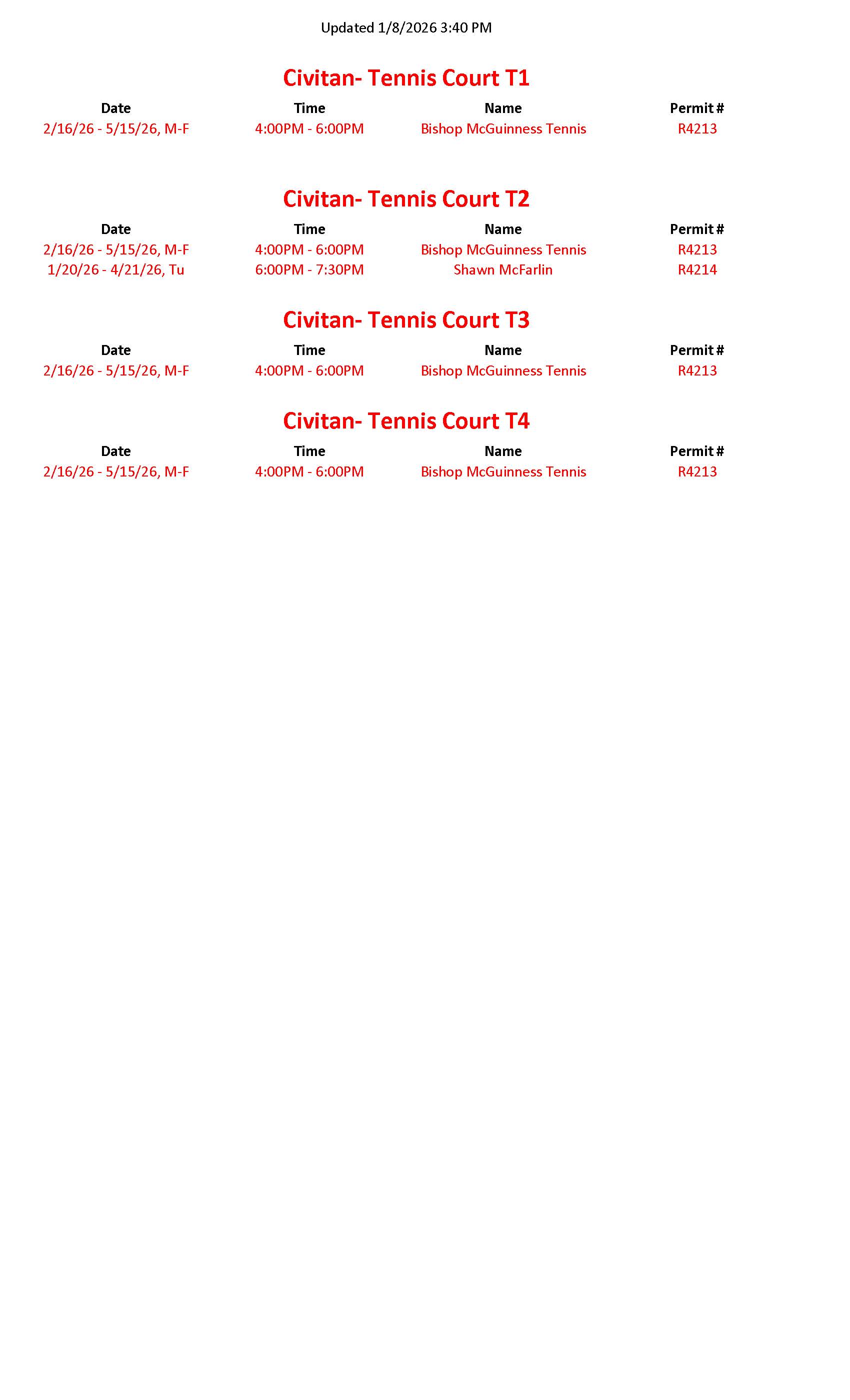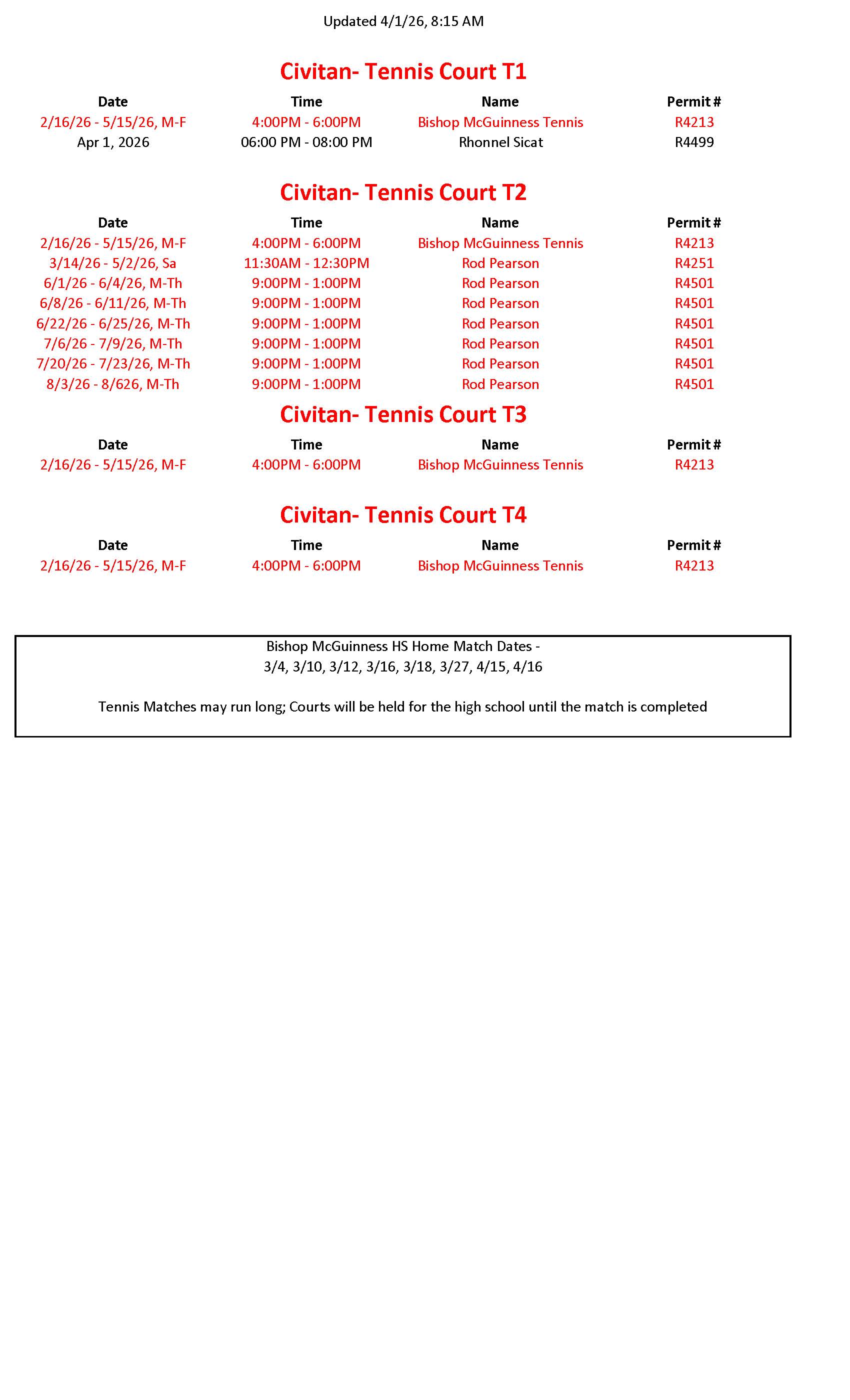 Civitan Tennis Schedule