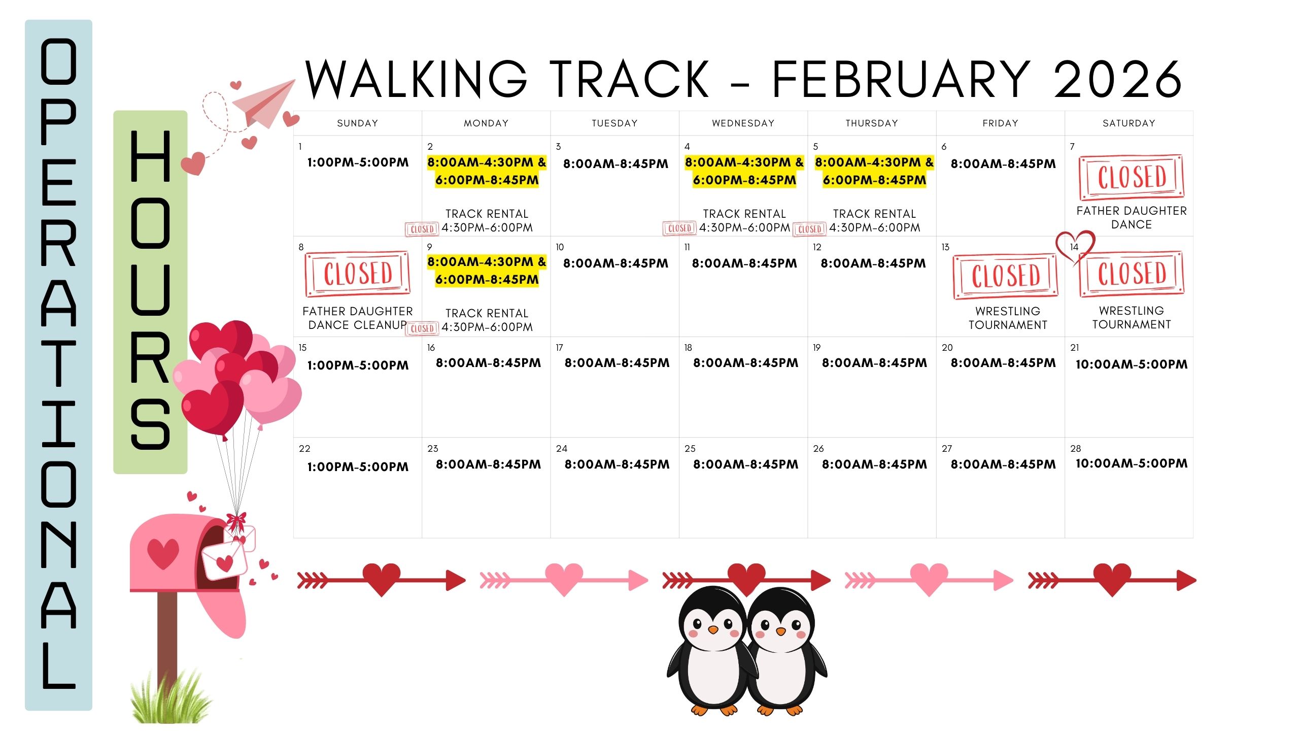Walking Track, Open Gym Sports, & Weekend Hours